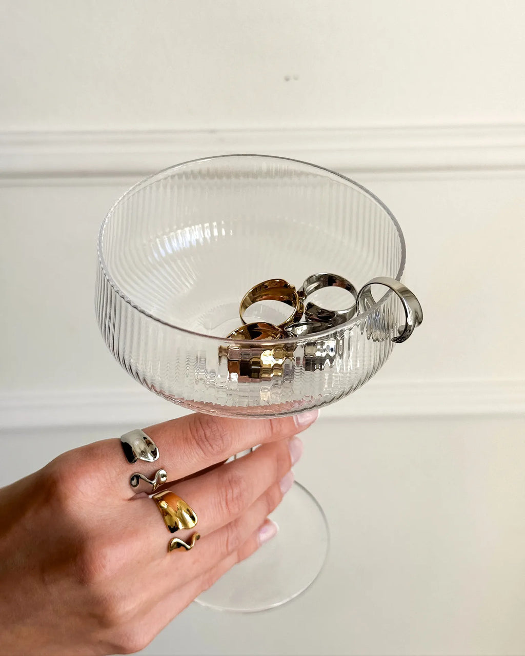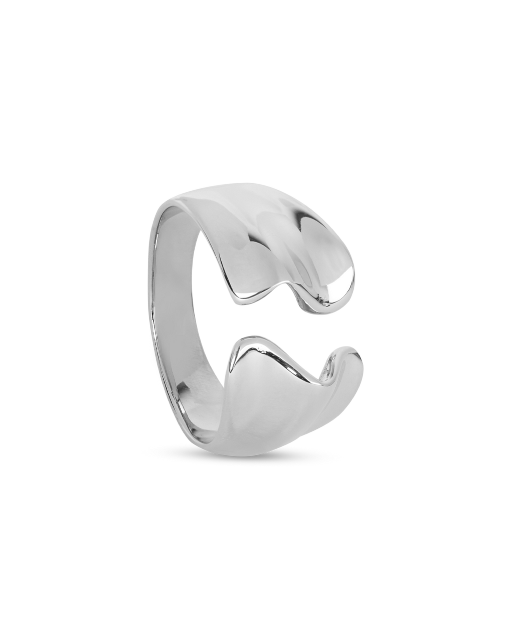 Anillo grande plateado con diseño ajustable.