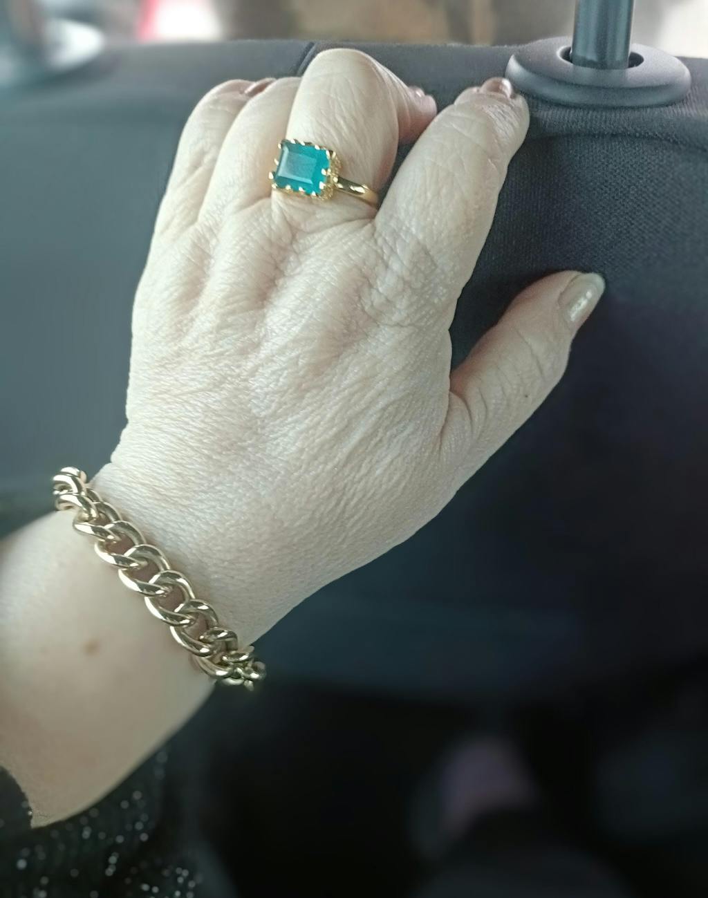 Anillo de plata con baño de oro y una piedra rectangular natural de Jade turquesa.