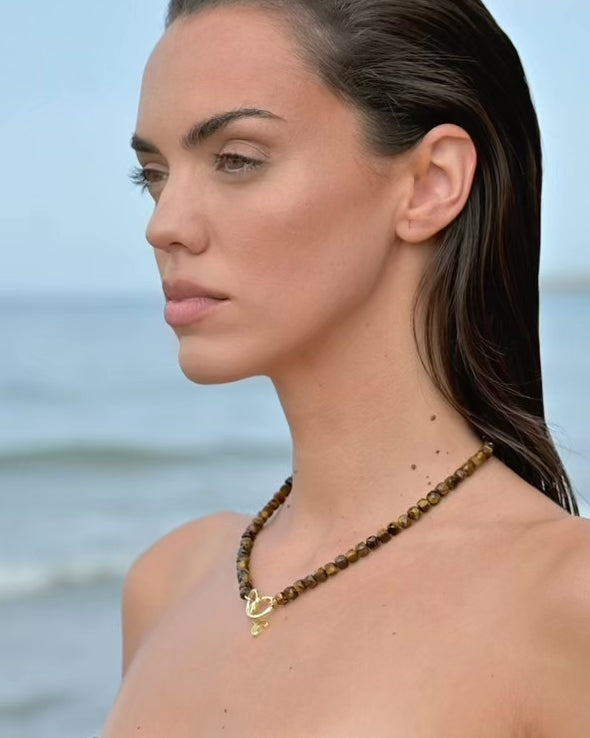 Collar con piedras naturales marrones, ojo de tigre.