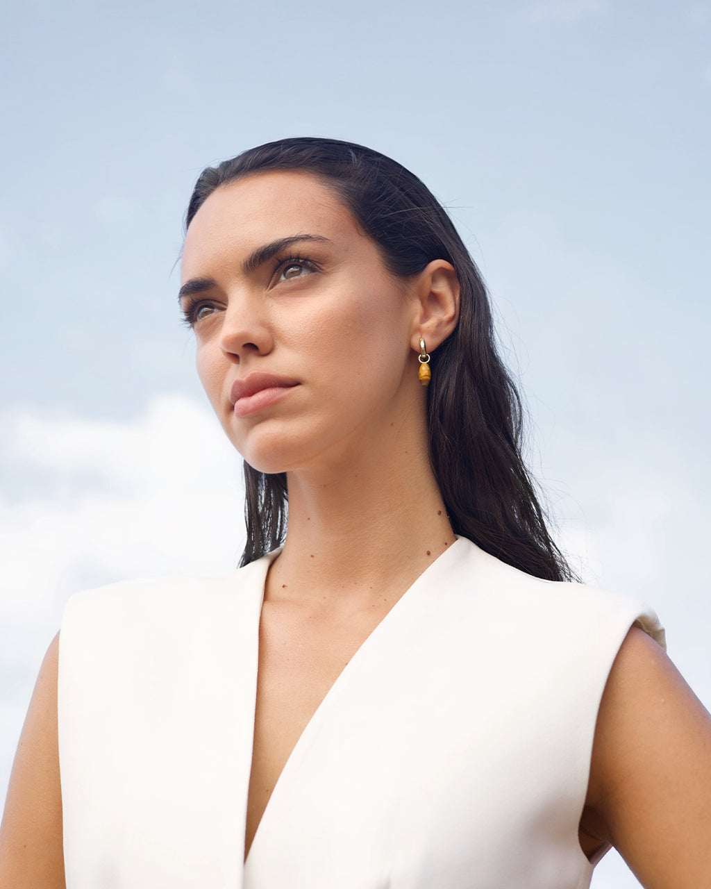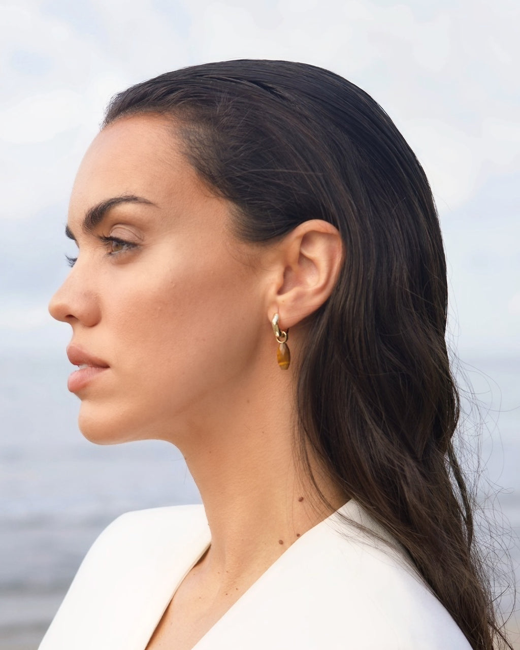 Pendientes ligeros con piedra natural marrón, ojo de tigre.
