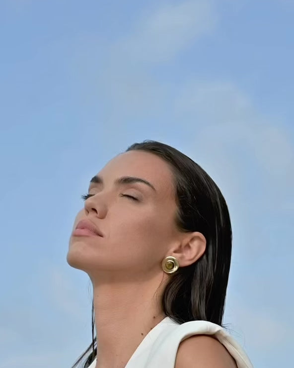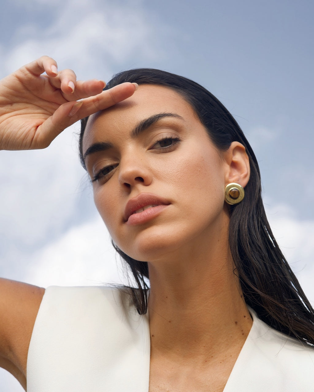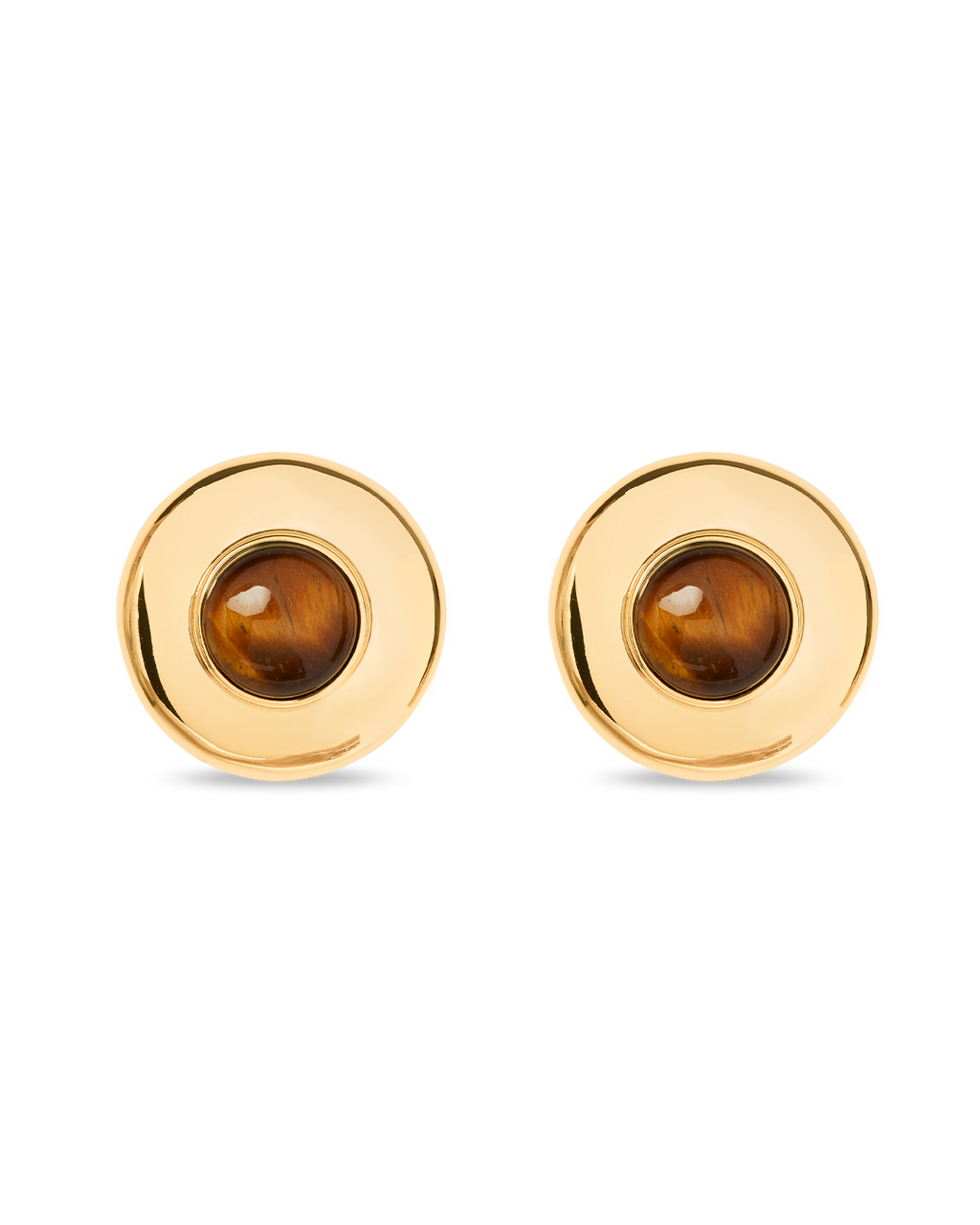 Pendientes redondos con piedra natural marrón, ojo de tigre.